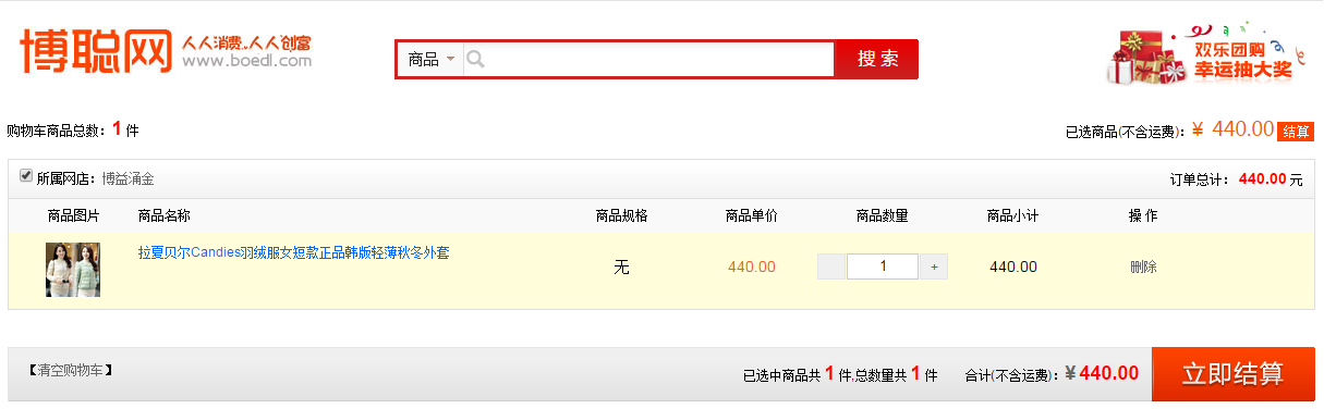 5、当您确认选购商品无误时,可点击“进入结算中心”,进行结算。 |