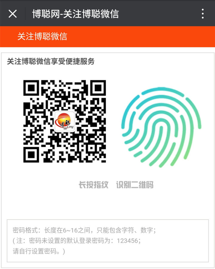 2.长按识别二维码,关注博聪网公众号,以便今后随时打开博聪网。