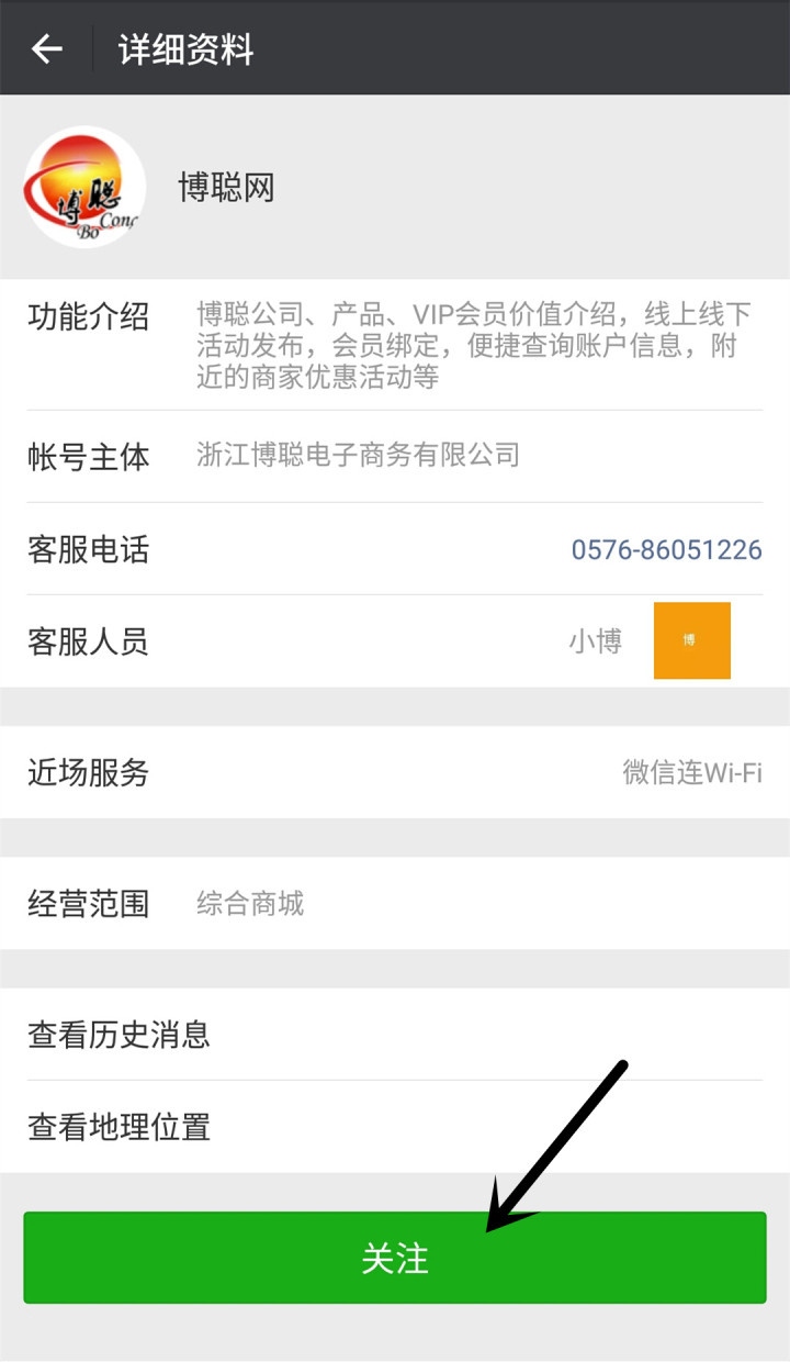1.在微信中搜索公众号博聪网并关注。