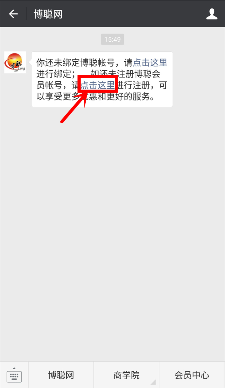 2.进入公众号后,点击这里进入注册页面。