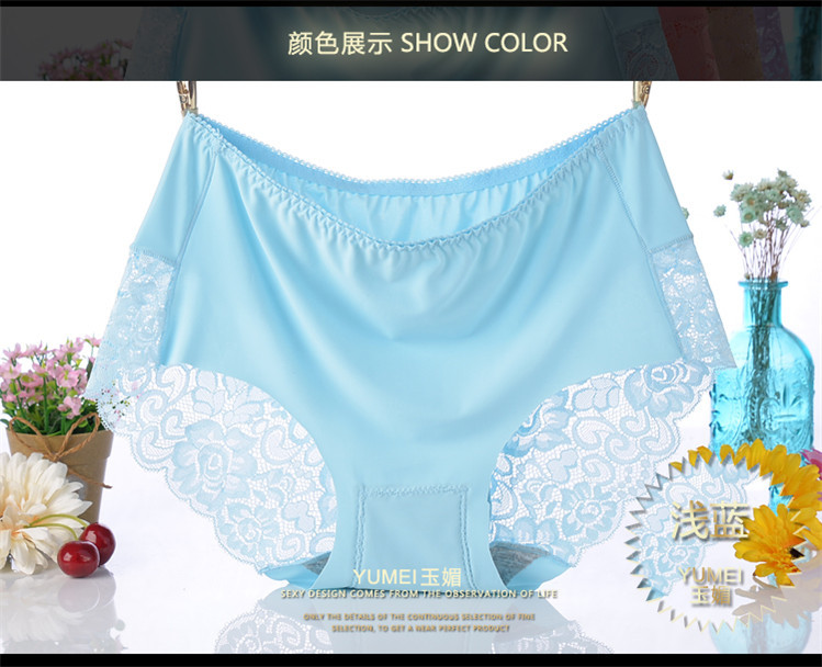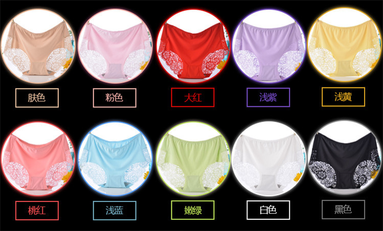 蕾丝花边女士内裤冰丝无痕一片式 中腰大版女式三角内裤