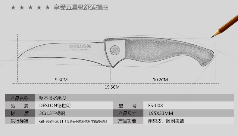 德世朗不锈钢水果刀德国工艺家用小刀削皮器削皮刀瓜果刀特价 啄木鸟外形 舒适手柄 进口钼钒钢