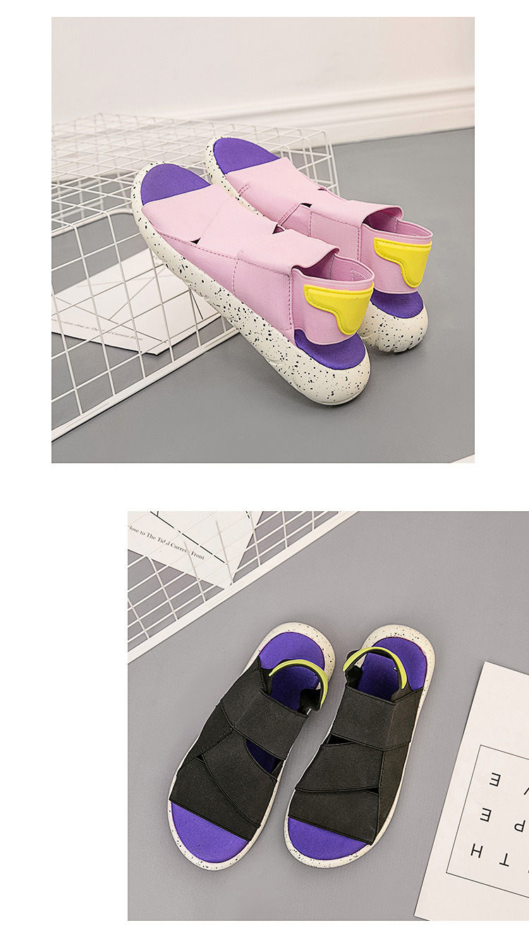 夏季韩版休闲平底百搭凉鞋女学生罗马松糕厚底松紧带露趾沙滩女鞋