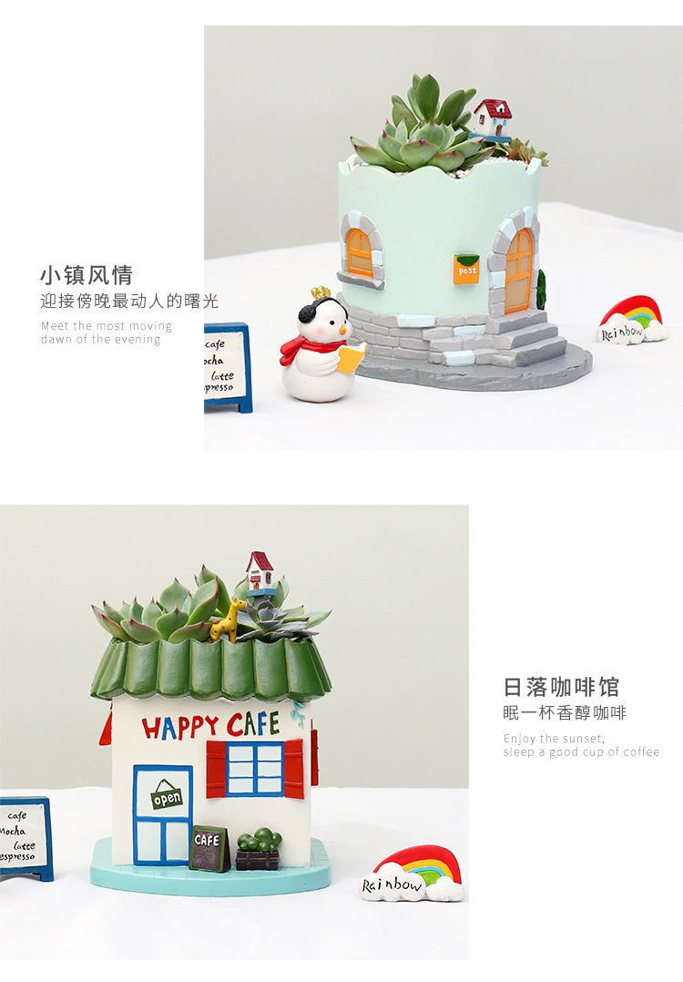 如果家居 地中海小森日落咖啡馆社多肉树脂创意花盆