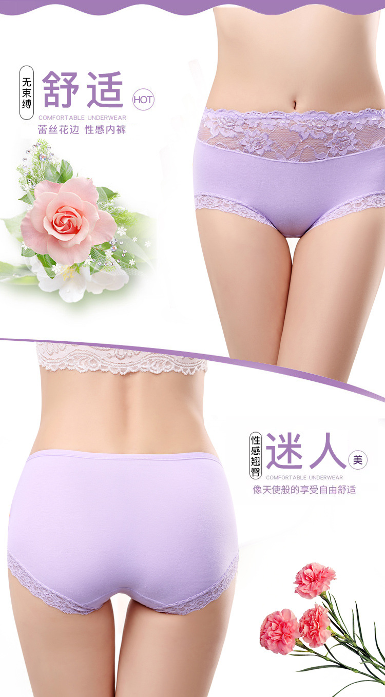 性感内裤 纯棉内裤中腰 蕾丝内裤女士内裤全棉收腹提臀