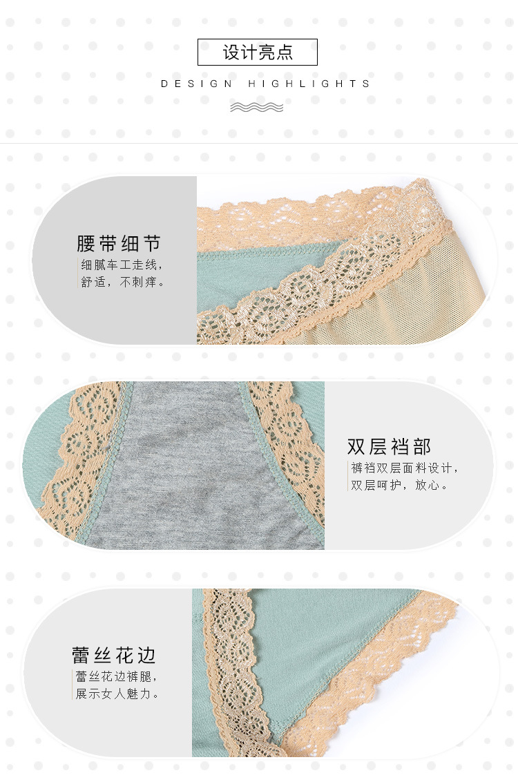 蕾丝内裤 女士高腰内裤舒适 透气镂空三角裤盒装