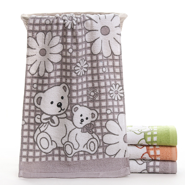 高阳飞飞跑江湖摆地摊印花双熊格子纯棉70g吸水毛巾