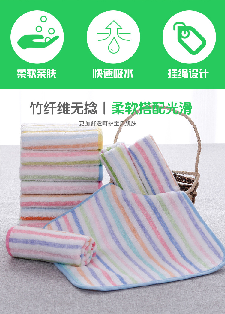 竹纤无捻彩条手帕特价通用儿童小方巾