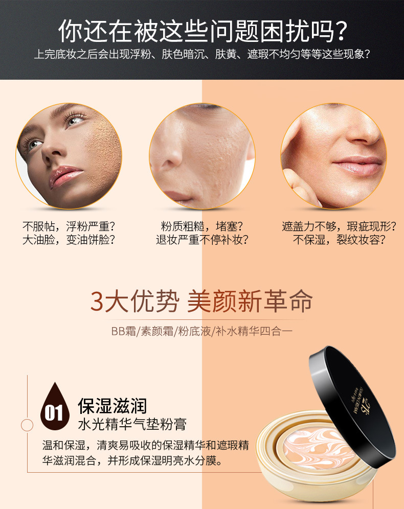 莱蔻BB霜保湿裸妆隔离遮瑕粉底液彩妆化妆品