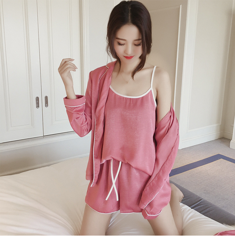 少女睡衣7件套真丝皱丝质女夏开衫家居服可爱睡衣
