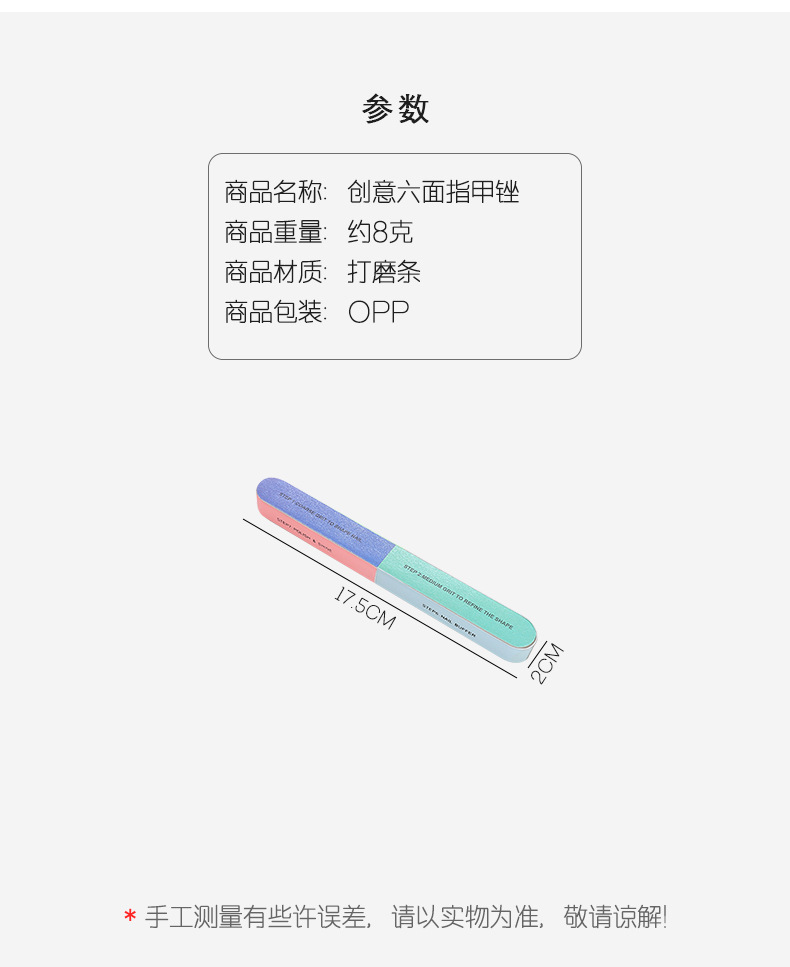 1586指甲锉刀打磨砂条六面抛光锉美甲工具指甲锉条双面磨指甲器