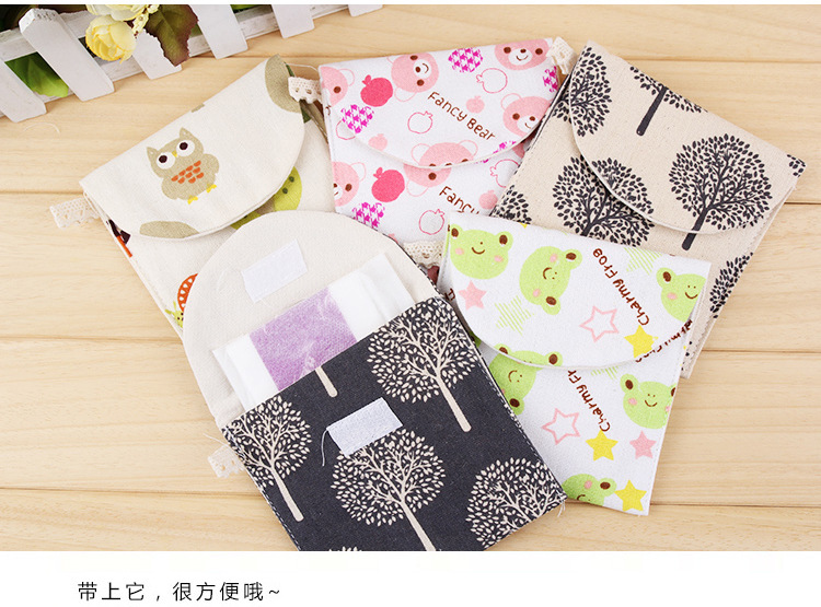 可爱清新多图案卫生棉包 卡通棉麻女生姨妈巾收纳包装卫生巾的包