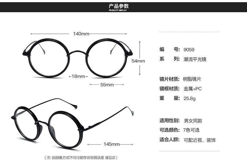 韩国原宿金属眼镜框近视男女款超轻复古文艺圆形细框眼镜架平光镜