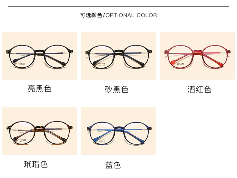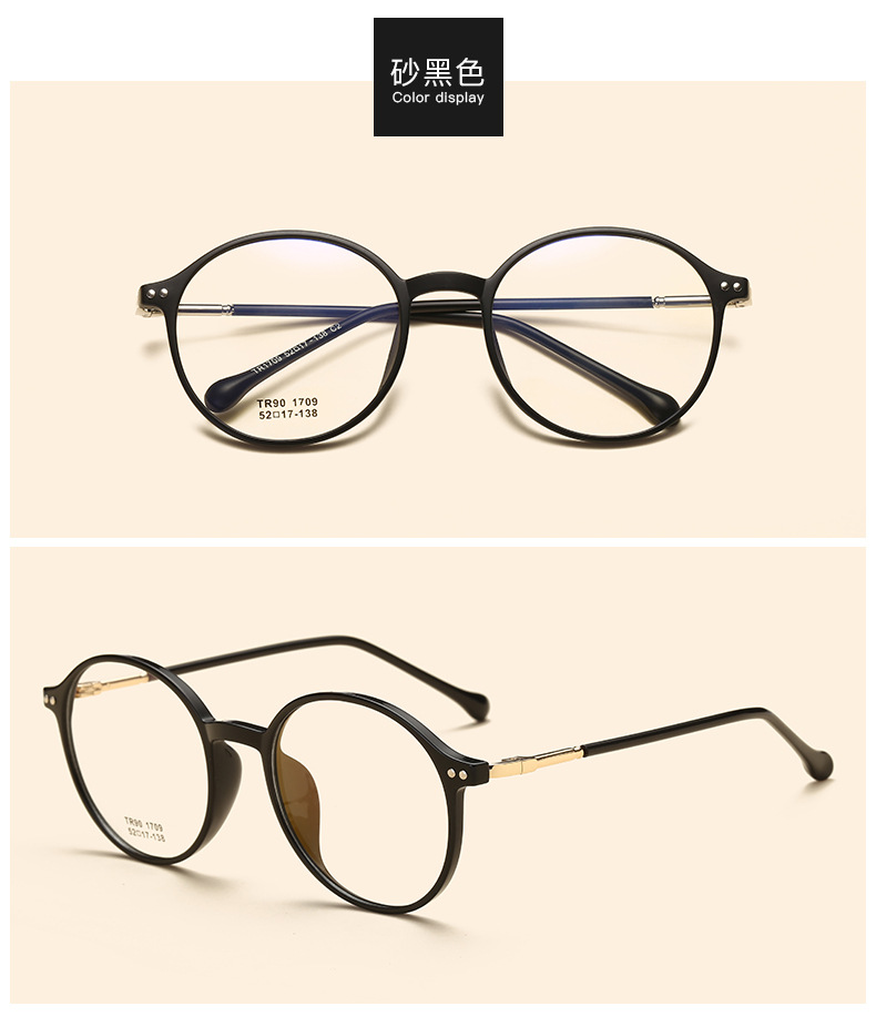 时尚新款大框平光眼镜男女复古TR90眼镜框 圆形大框眼镜架
