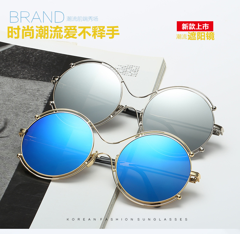 新款圆框眼镜时尚大牌女士太阳镜潮人街拍走秀情侣款墨镜