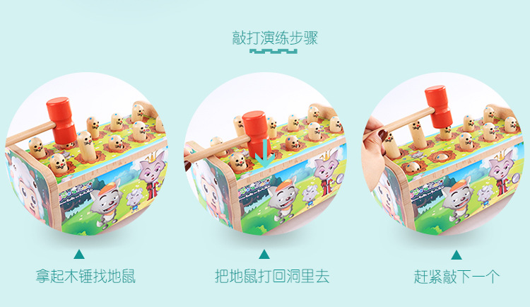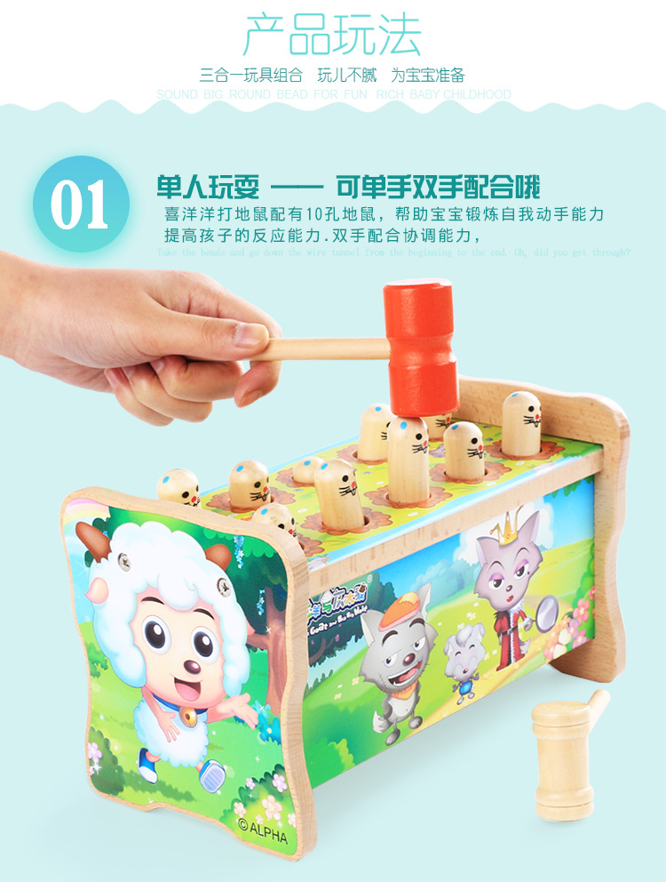 儿童木质早教喜羊羊与灰太狼打地鼠玩具1-2-3岁亲子活动敲打游戏