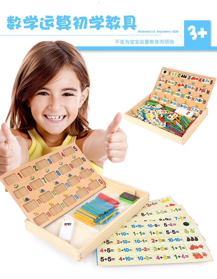 木制儿童早教数学运算初学教具120题幼教加减法数数棒运算盒玩具
