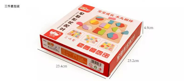 木制形状配对早教蒙氏拼图立体积木几何益智玩具