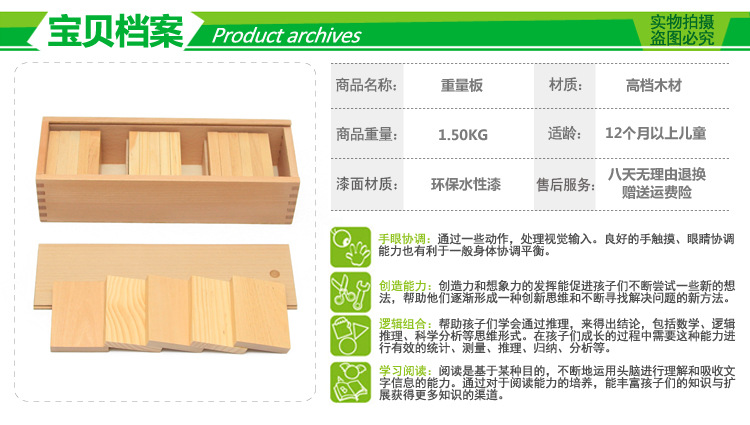 蒙氏感官类教具儿童专业版蒙台蒙特梭利重量板幼儿园早教