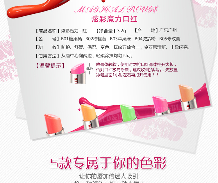 红与黑彩妆炫彩魔力口红持久保湿滋润唇彩变色口红润唇膏润唇膏