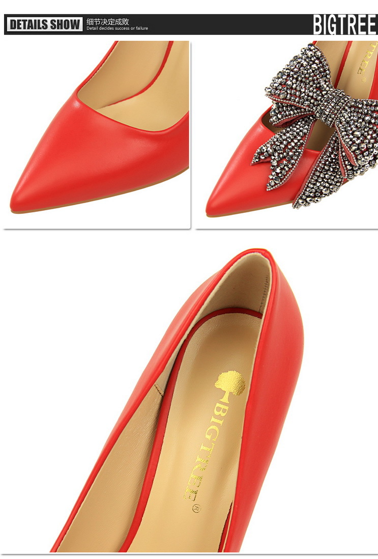 韩版优雅高跟鞋女鞋超高跟浅口尖头一字带水钻蝴蝶结单鞋