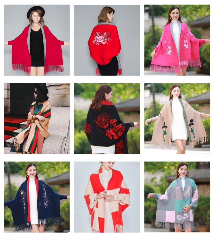 2018新品披肩斗篷披风女外搭加厚超大冬季流苏围巾外套两用