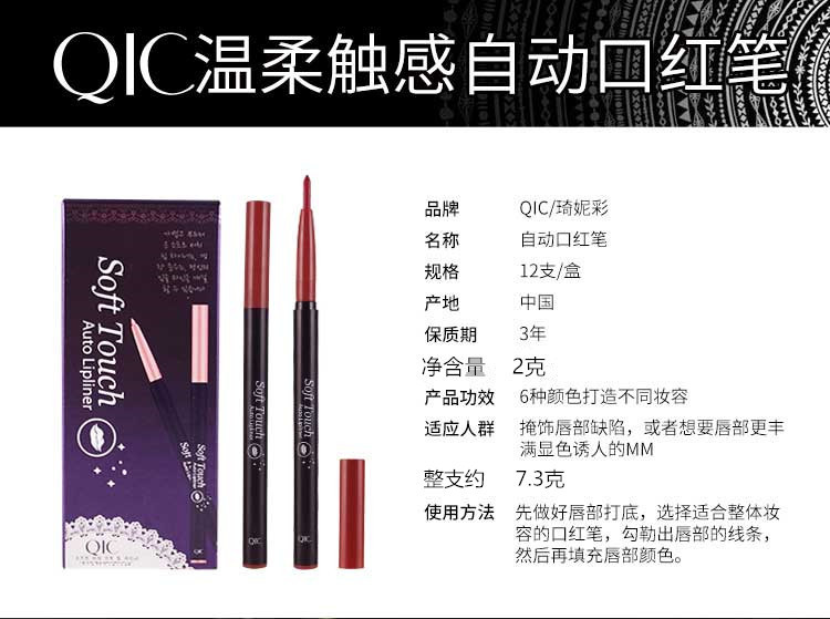 QIC/琦妮彩自动旋转唇线笔 防水保湿不脱色唇笔口红笔