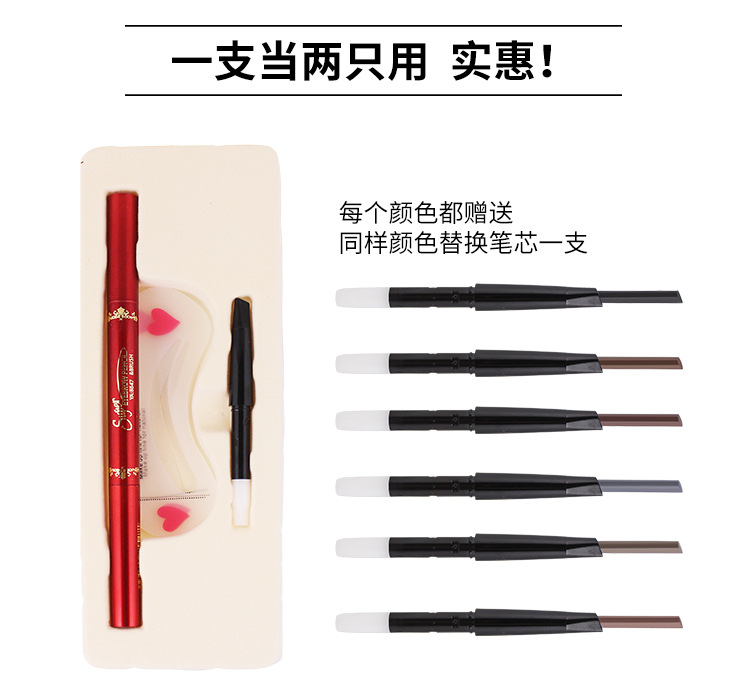 厂家直销 三合一自动旋转双头眉笔送替换笔芯送眉卡 眉笔套装