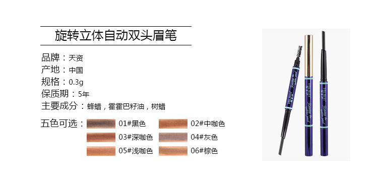 工厂直销眉笔 雅莱伊自动旋转眉笔双头 防水不脱妆易上色