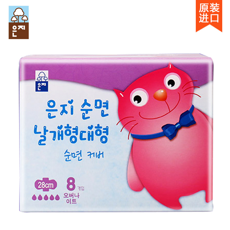 原装进口姨妈巾 恩芝猫小菲纯棉卫生巾夜用装280mm8片 防过敏