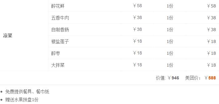 仅售588元!价值946元的6-8人餐,提供免费WiFi。赠送水果拼盘1份,食材新鲜,出品美味,让人流连忘返。