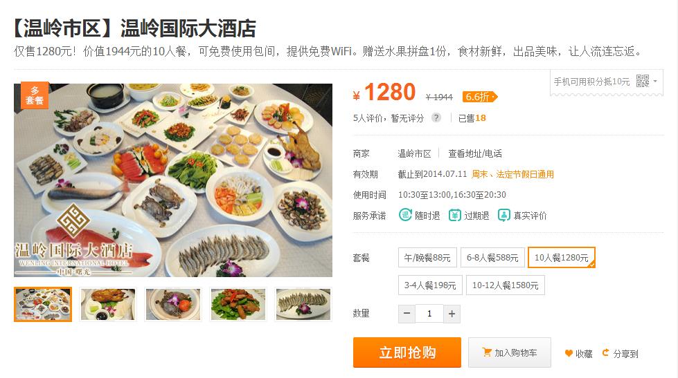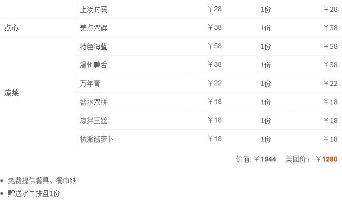 仅售1280元!价值1944元的10人餐,可免费使用包间,提供免费WiFi。赠送水果拼盘1份,食材新鲜,出品美味,让人流连忘返。