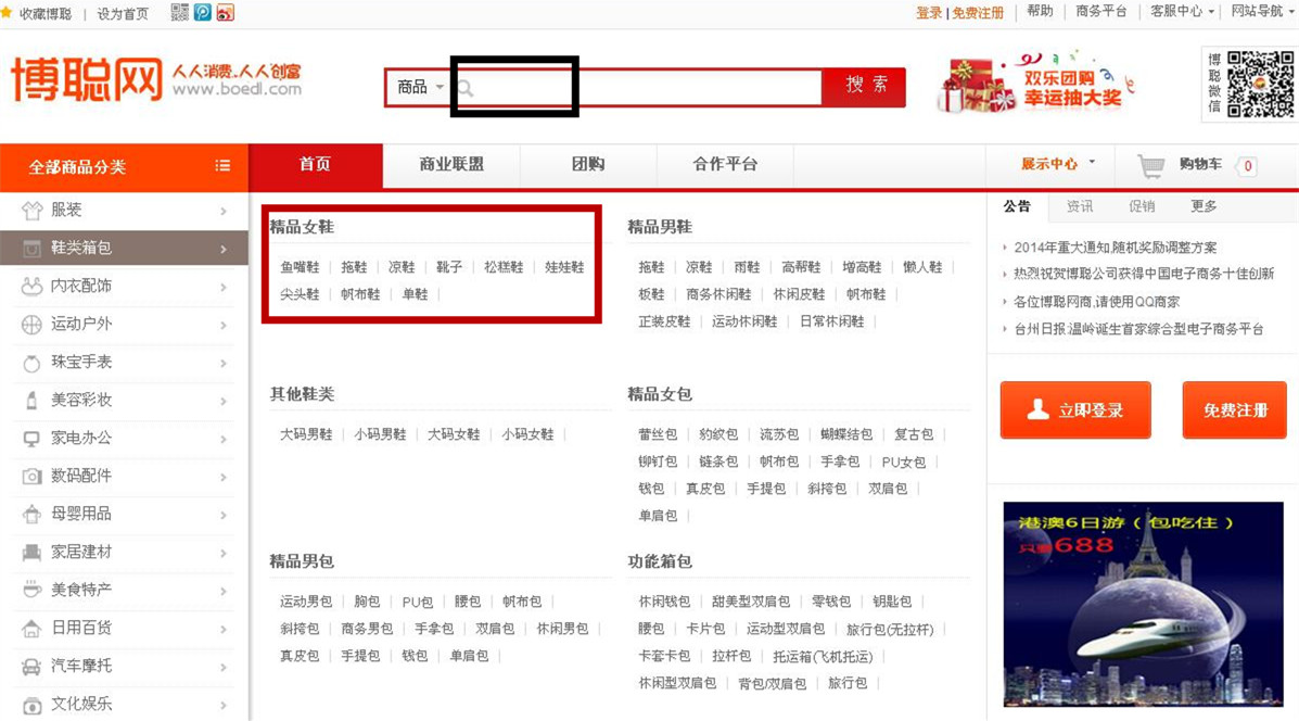 | 2、可以通过搜索栏或分类导航找到您要购买的商品 |