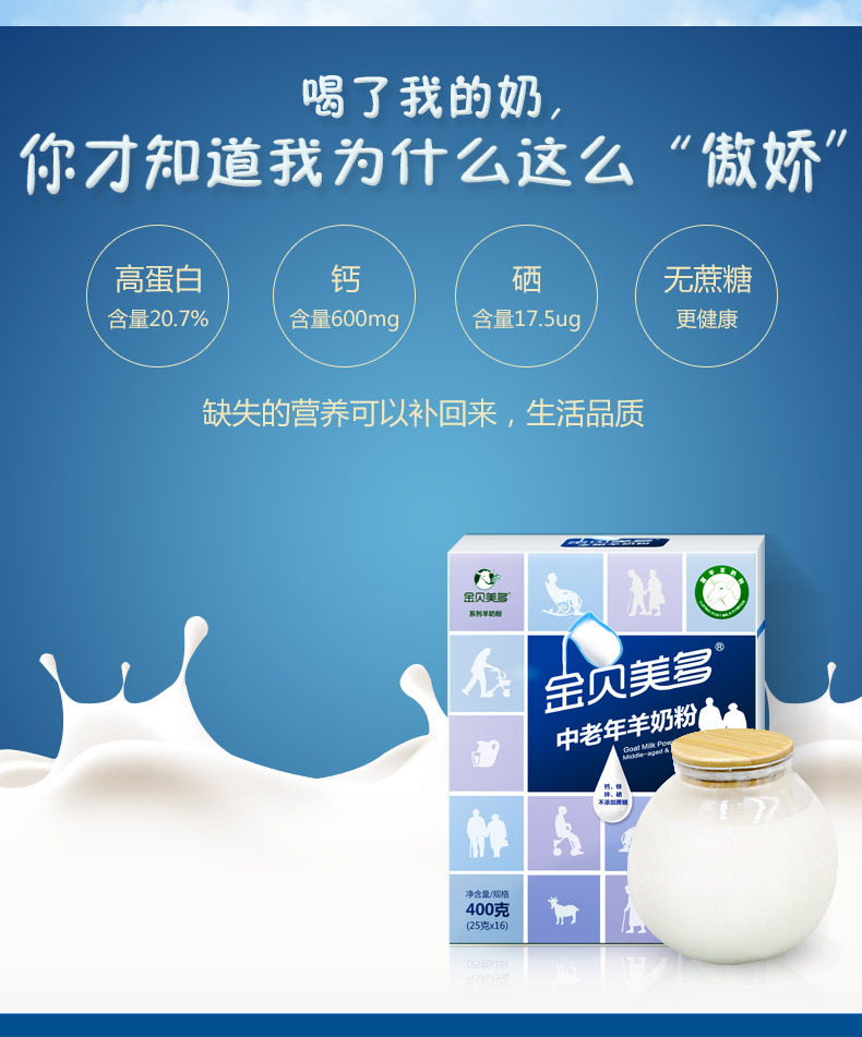 羊奶 粉中 老年补钙富硒无糖成人400g盒