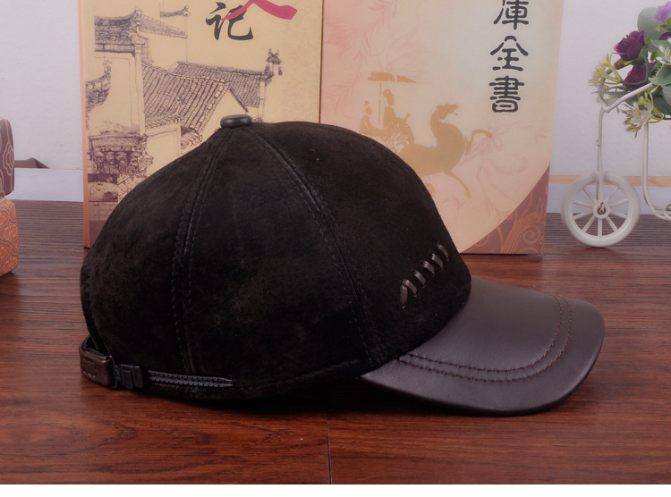 真皮帽子 男士女士 秋冬季绵羊皮鸭舌棒球帽 户外休闲运动皮帽子