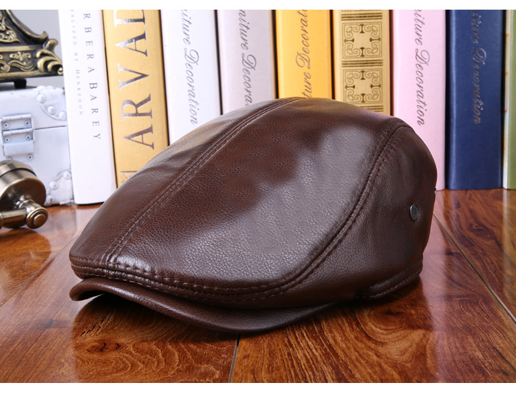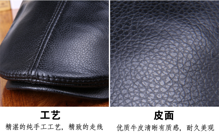 厂家直销海宁皮帽子牛皮前进帽冬季保暖护耳男士真皮贝雷帽