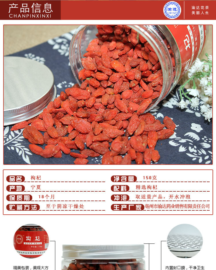 渝达花茶 宁夏中宁枸杞 枸杞王杞果 大颗粒 罐装散装