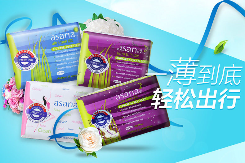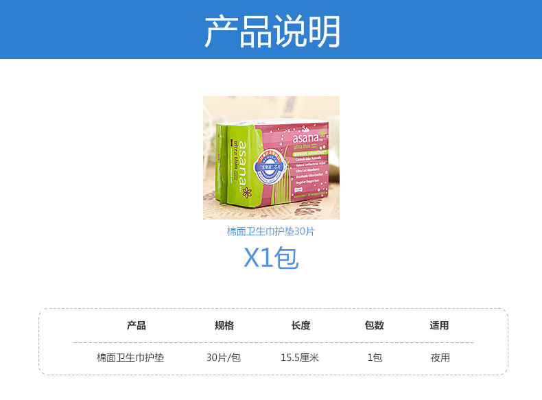 加拿大原装进口卫生巾护垫 阿莎娜超薄棉棉护垫30片155mm