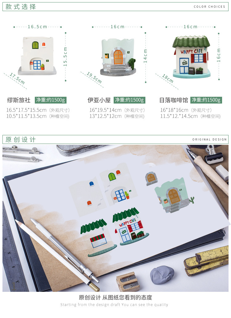 如果家居 地中海小森日落咖啡馆社多肉树脂创意花盆