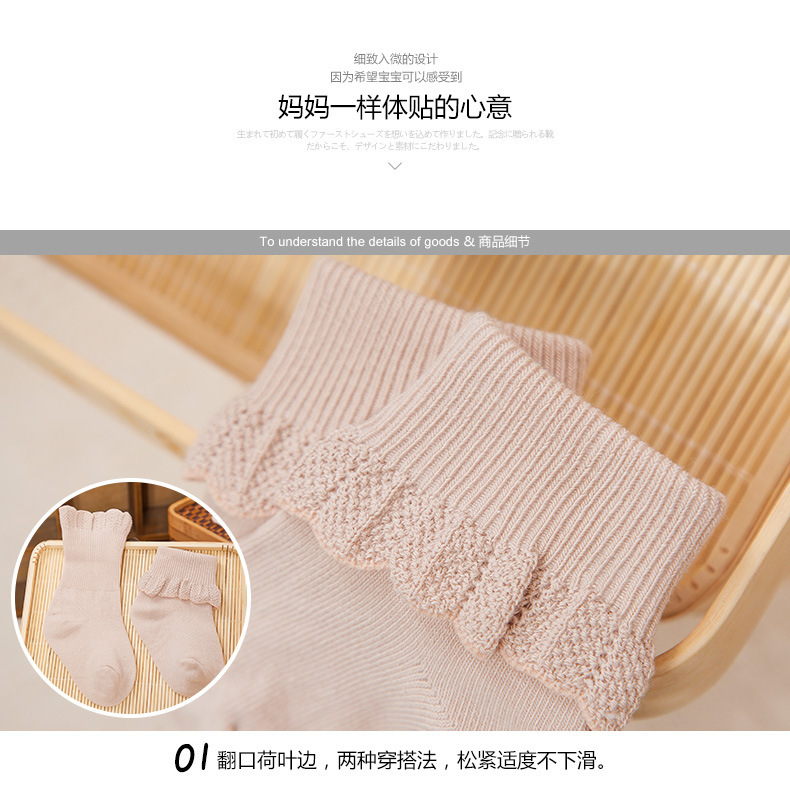 童袜棉春秋宝宝袜子女童双针翻口花边公主袜婴儿袜子0-1-3