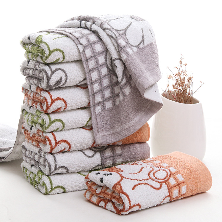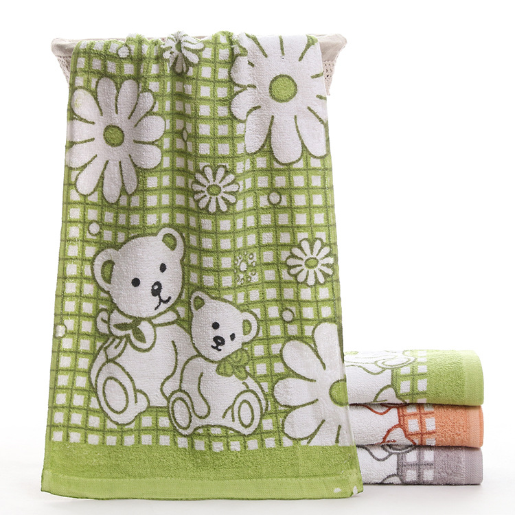 高阳飞飞跑江湖摆地摊印花双熊格子纯棉70g吸水毛巾