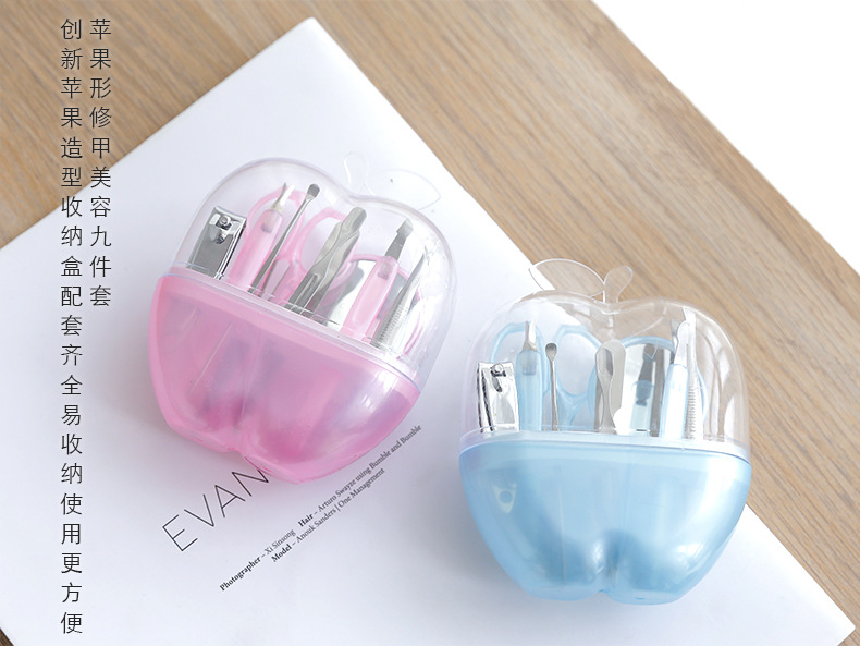 苹果型9件套美甲工具 不锈钢指甲刀指甲剪指甲钳美容美甲套装