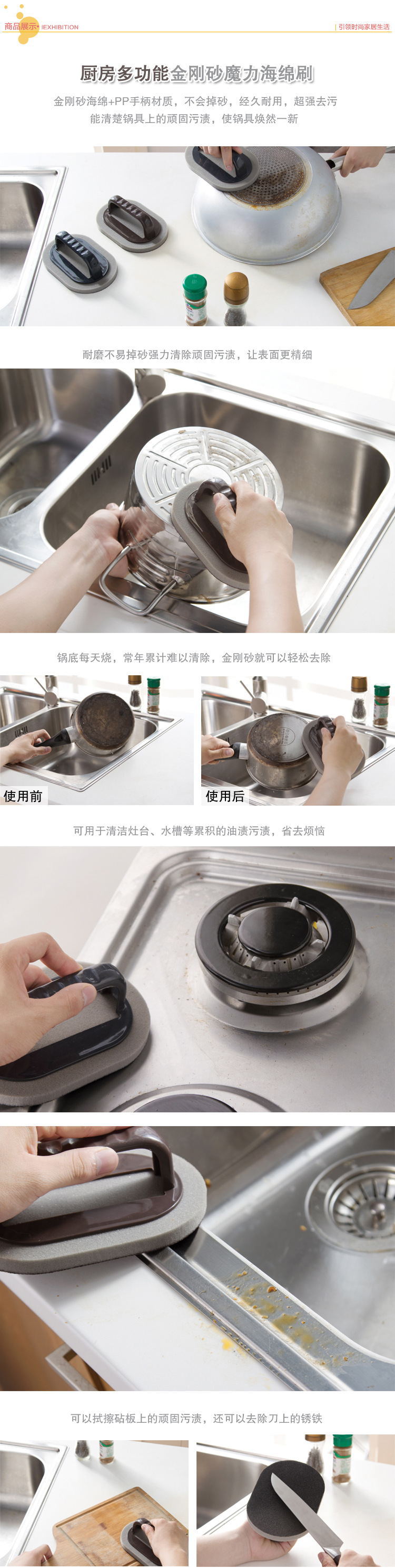 1896带手柄金刚砂魔力擦去污除垢海绵 厨房用品铁锈清洁刷海绵擦