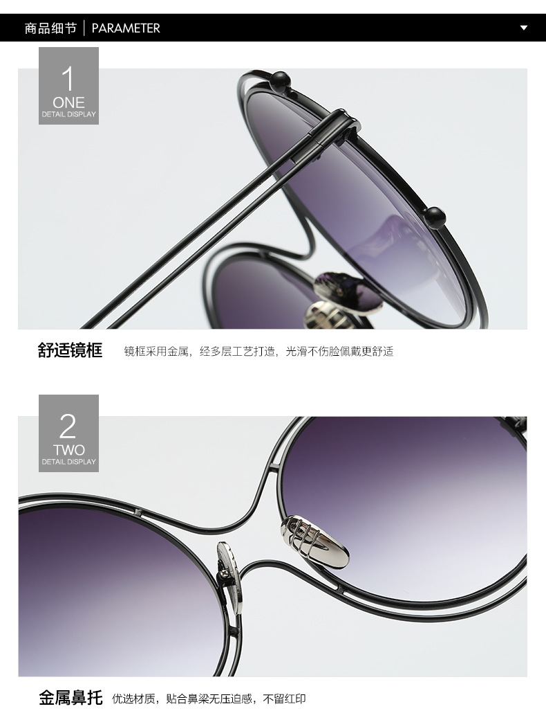 新款圆框眼镜时尚大牌女士太阳镜潮人街拍走秀情侣款墨镜
