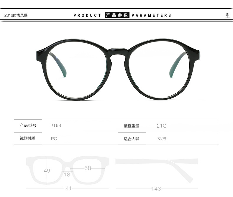 韩版时尚潮流眼镜框 大框眼镜 复古圆形眼镜架