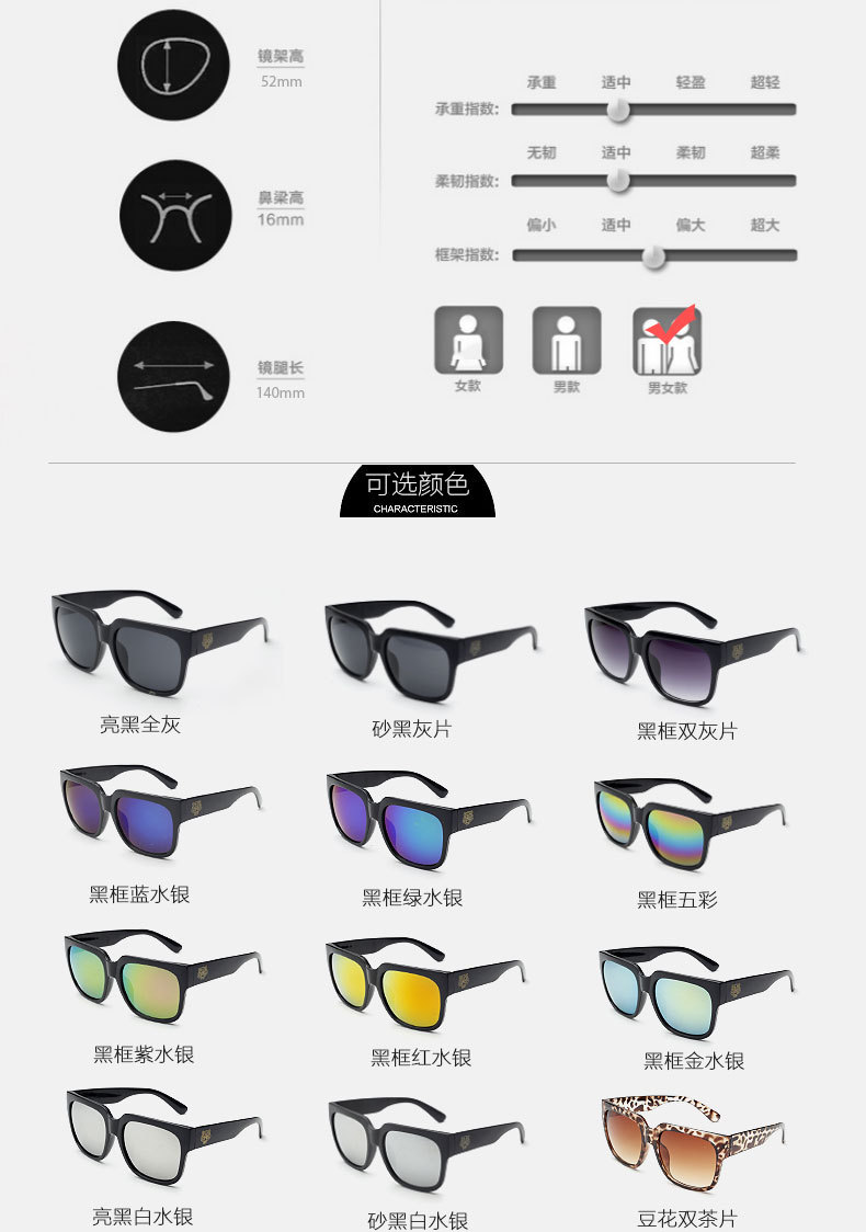 复古男女通用太阳镜欧美大框自主品牌墨镜老虎头蛤蟆镜