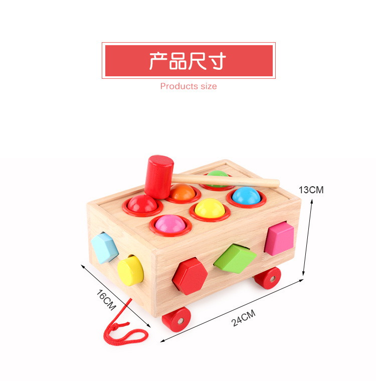 儿童木制早教10孔拖车智力盒益智力1-2-3岁形状配对敲球敲琴玩具