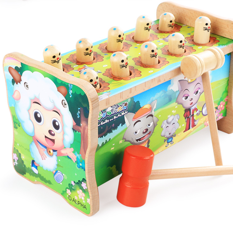 儿童木质早教喜羊羊与灰太狼打地鼠玩具1-2-3岁亲子活动敲打游戏