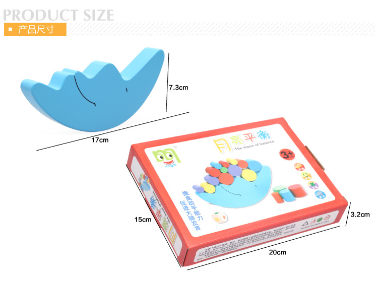 木制月亮平衡积木儿童益智彩色叠叠乐堆塔玩具