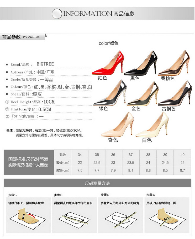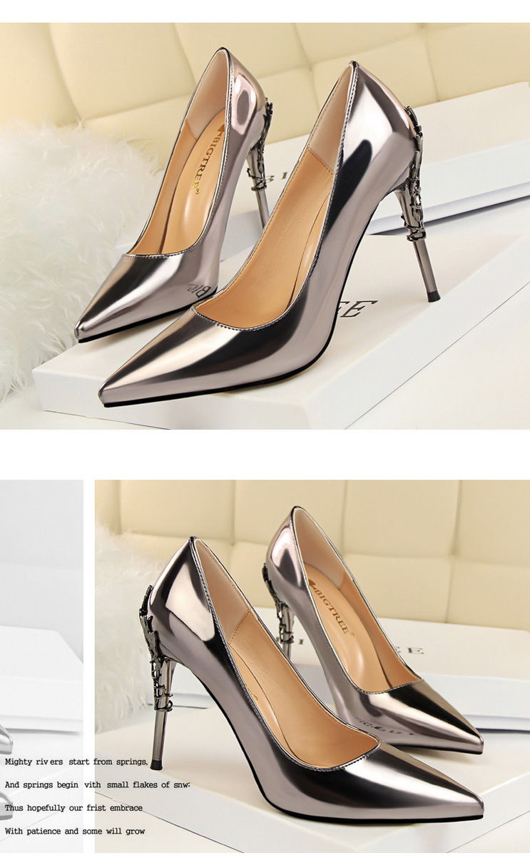 欧美风时尚性感金属跟女鞋细跟高跟浅口尖头漆皮显瘦单鞋